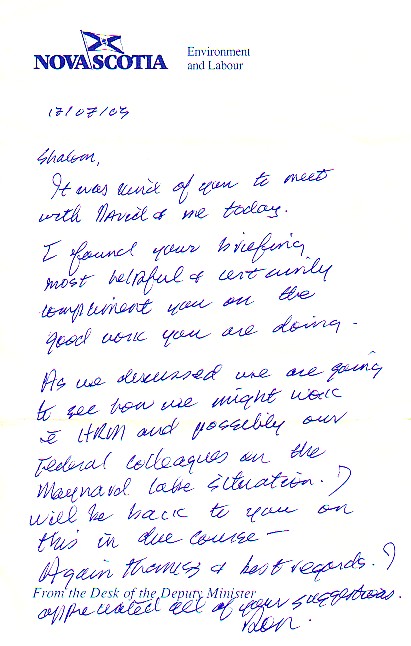 - The kind visit of Deputy Minister, Ron L'Esperance, to