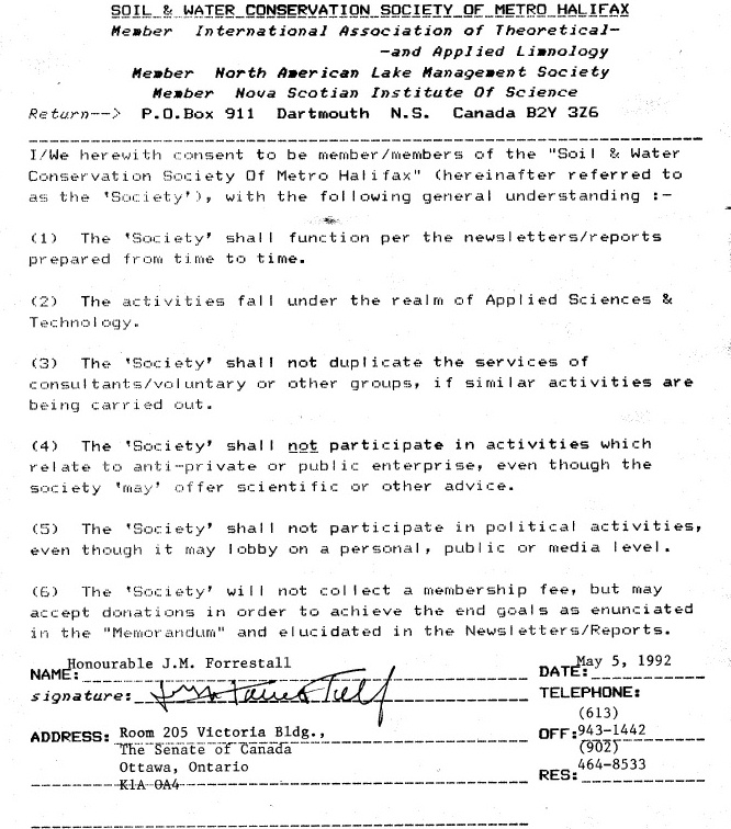 - Senator Michael Forrestall, Dartmouth, NS., and Ottawa (member)