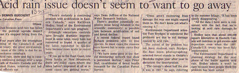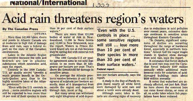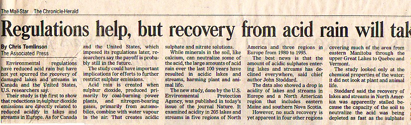 - Before-After Analysis, Impacts of acid deposition, Nova Scotia, Canada