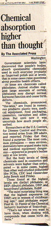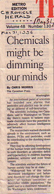 Chemicals might be dimming our minds: Source: an international panel of scientists; Chronicle-Herald, May 31, 1996: