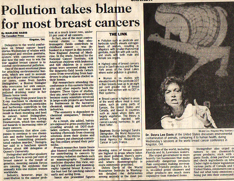 and breast cancers: Sources: Boston biologist, Sandra Steingraber, the