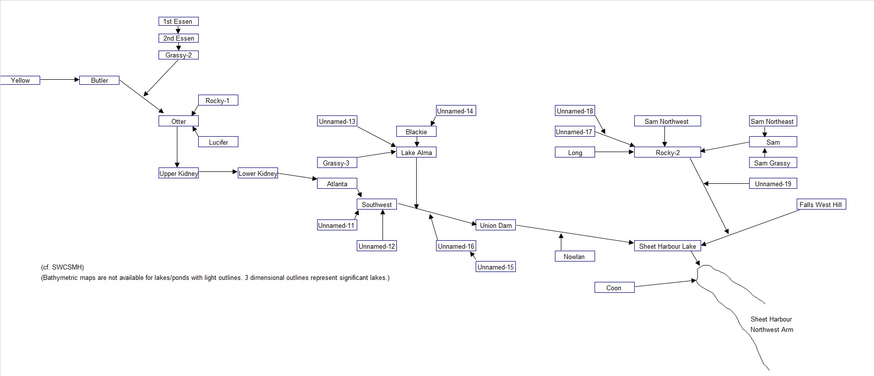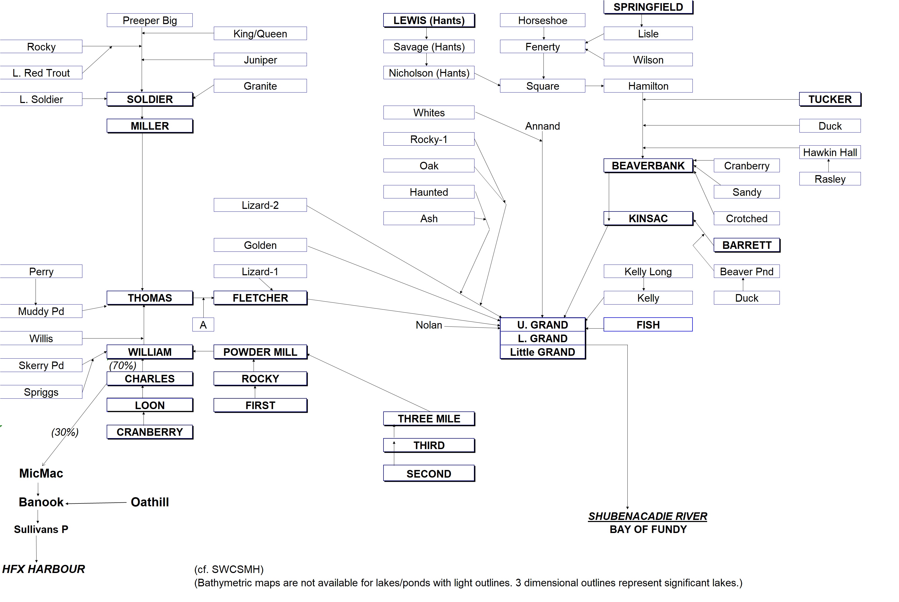 Fish R., Trout, Big, Loon, Shaw, Little, Cranberry, Ship Harbour Long,