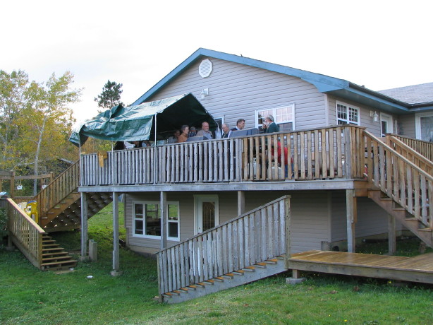 1. A tarp was erected over the patio deck as rain clouds threatened.