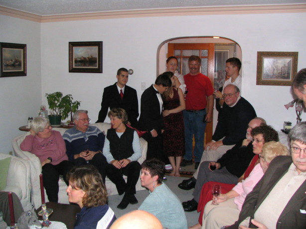 15. Mrs. O'Mara, Dianne, and Tom Pottie greeting John O'Mara.