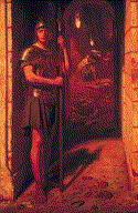 Edward Poynter in 1865. The title comes from Revelations 2:10, Be faithful unto death, and I will give you the crown of life. The image is from a passage in The Last Days of Pompeii