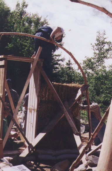 to create an earthen bond beam on which to rest the roof. Wattle and daub