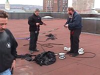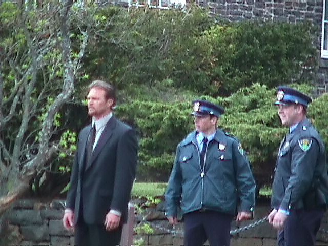 Co-Star Brian Bosworth awaits his cue with two film extras