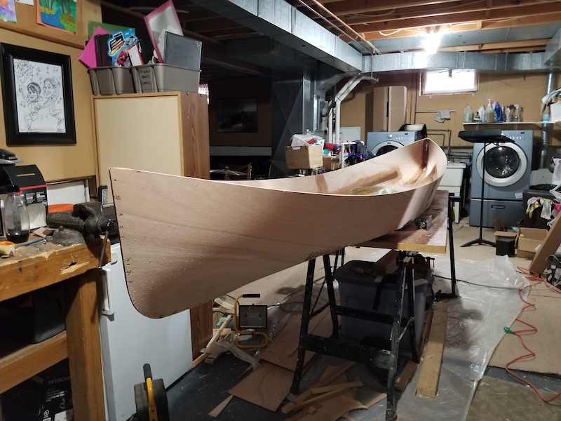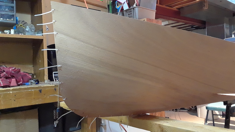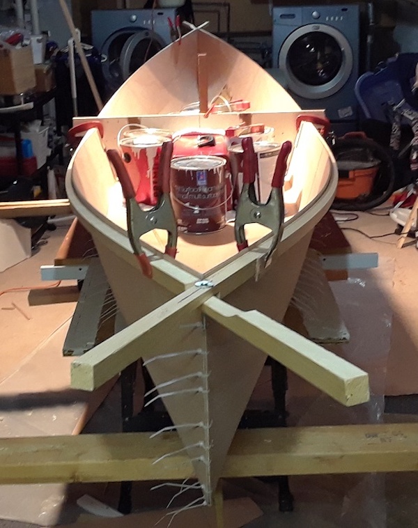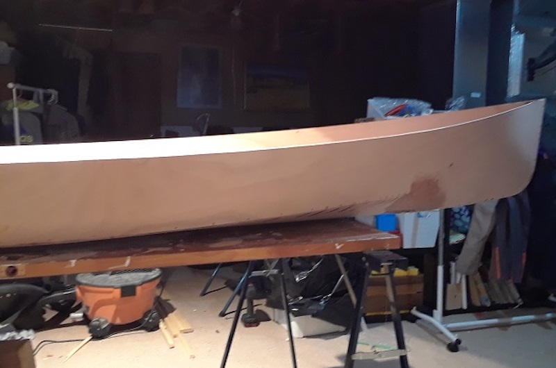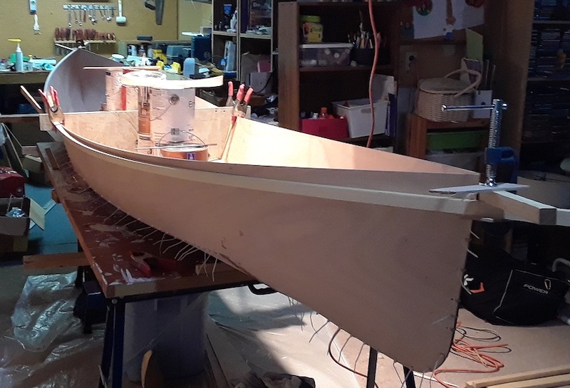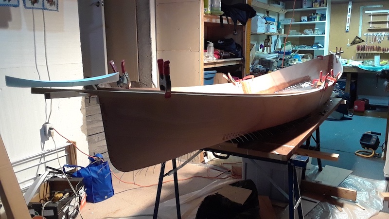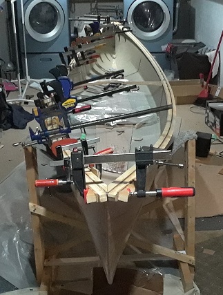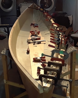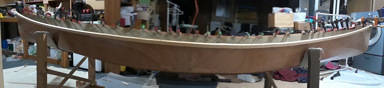 Although both gunwales are on, only one is glued at a time, not enough clamps or time, other ones just for balance.