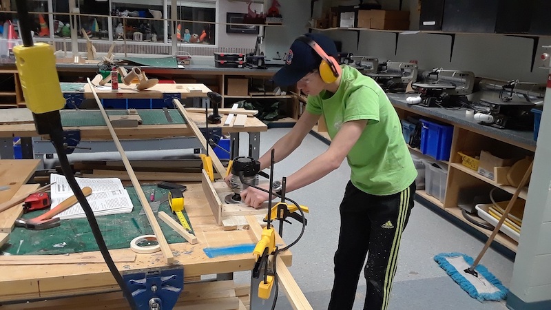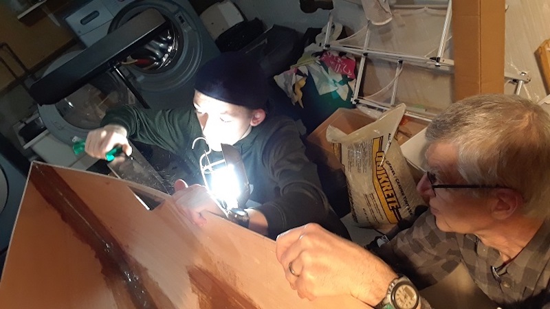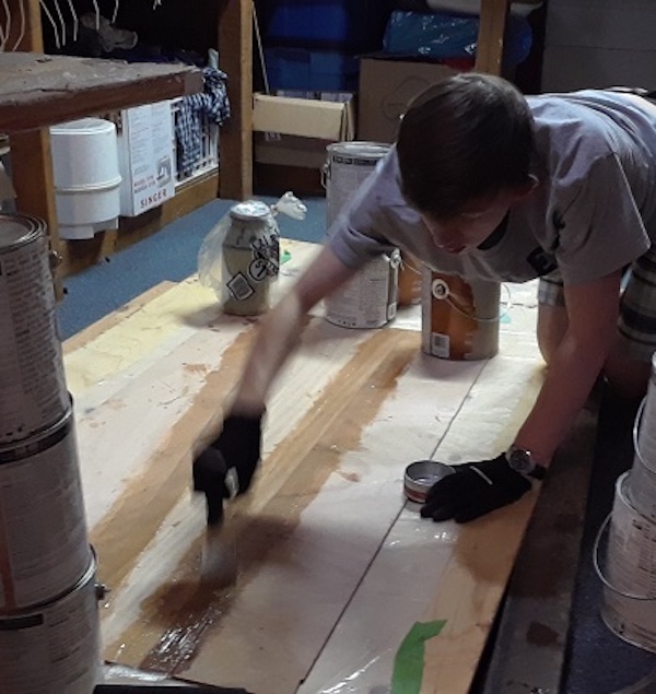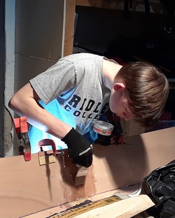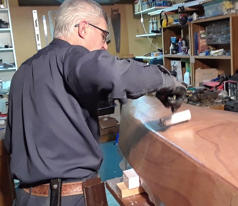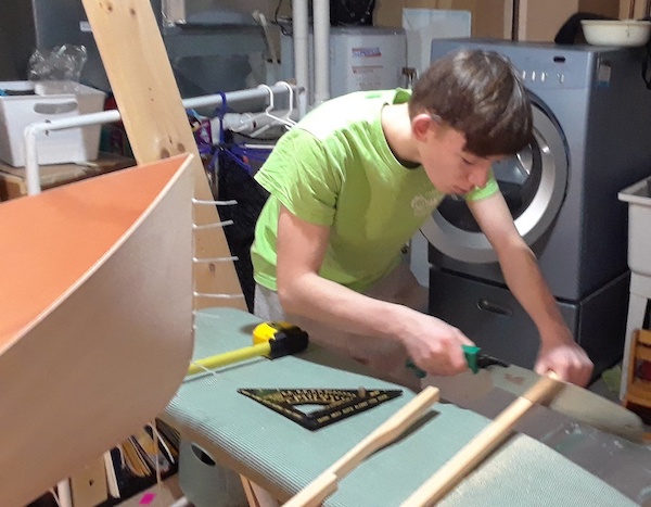 After school Gideon finishes cutting and planing last part of sheer, completing Step 108!!!!