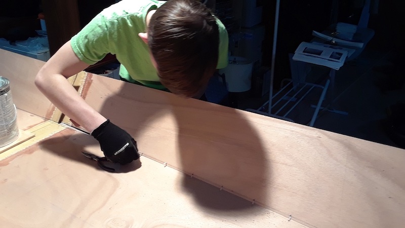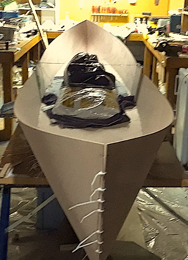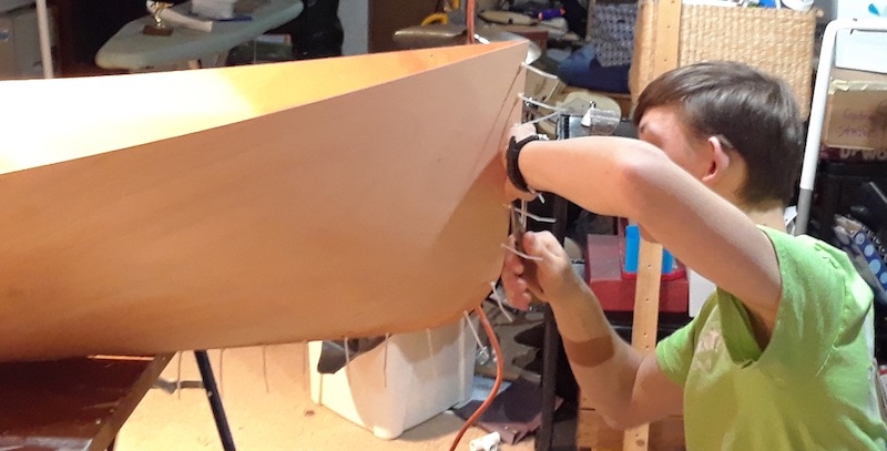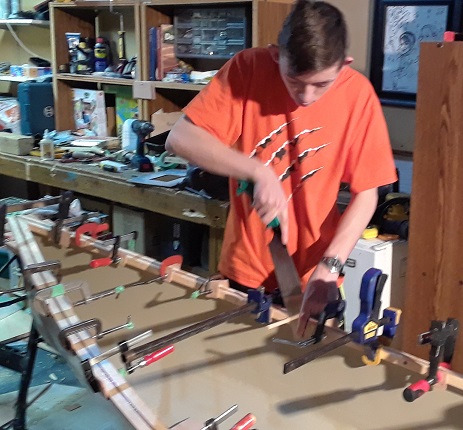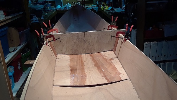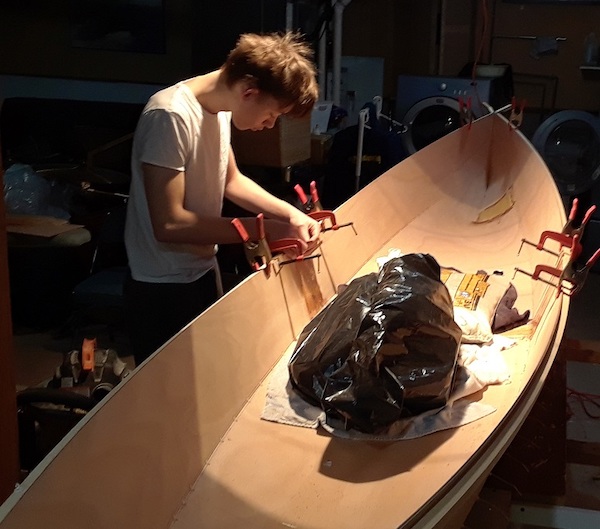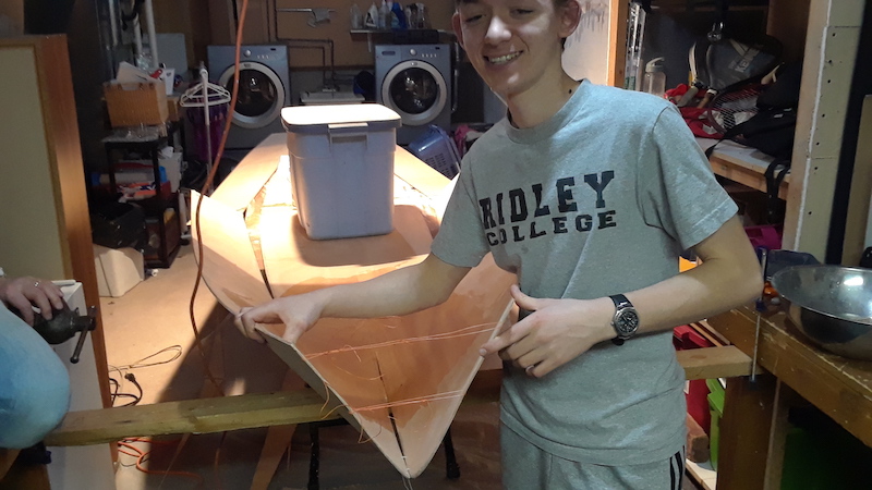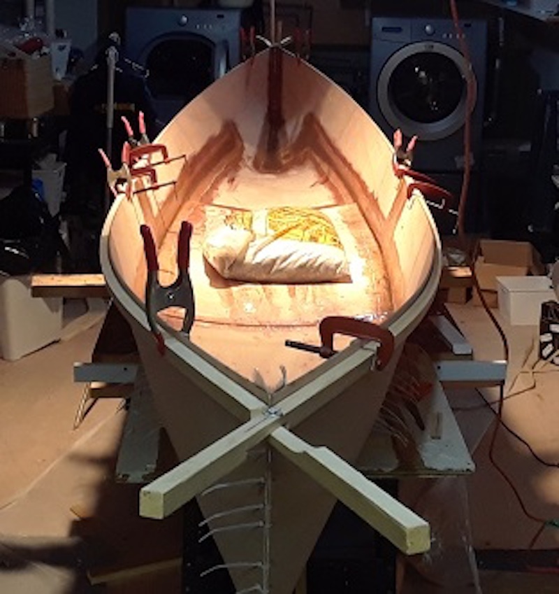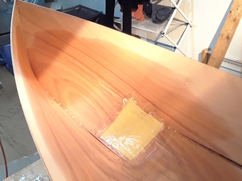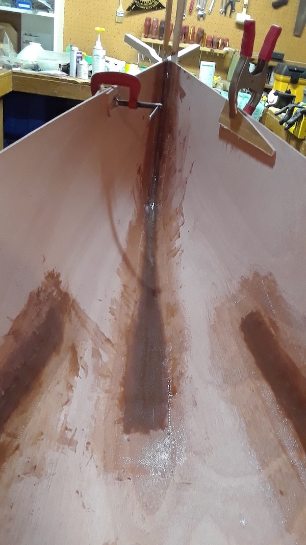 Sides joined waiting for epoxy to dry so we can put fiberglass strip on inside.