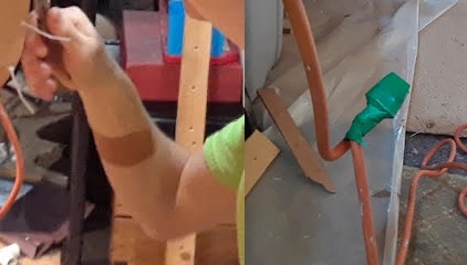 Fried eggs with garlic butter (not that bad), sliced arm on knife blade clamped in vice to sharpen pencil (not that smart) and cut off one electrical cord (not that bright).