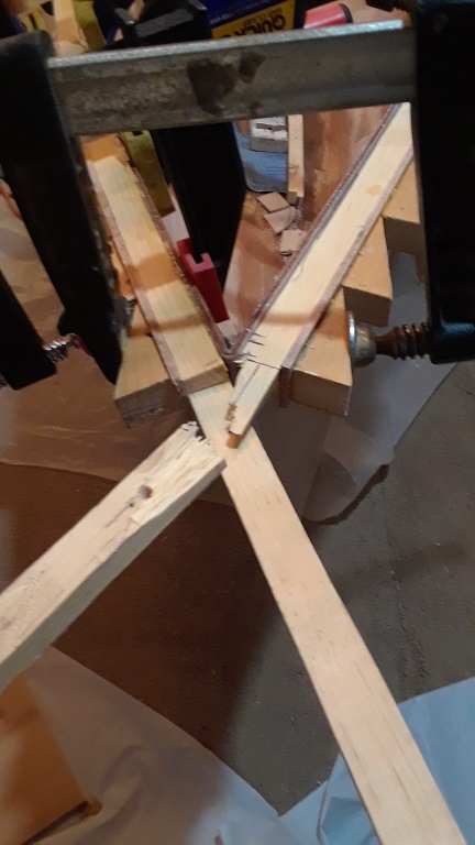 Out come the dragon teeth, a very cool jig used to clamp things that are not parallel to each other. Thanks to all who lent us clamps.