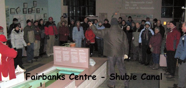 On Friday, 29 January, Betty and I drove to the Fairbanks Centre, to participate in a nighttime walk of the canal. Arriving at 7:00 p.m., we found ourselves among 50-odd like-minded souls, including very young children, and Gonzos Wendy and Bernie Levy, Ross Mitchell, and Jerome Bruhm.