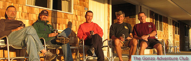 What makes for a great Gonzo day. Well, there are lots of moving parts. These things can't happen sitting in front of the TV or zooming about the back-country on a 4 wheeler. Nosirree, Bob, you need to at least be doing some sort of Gonzo sport, which by definition is human-powered. As well, you need to be with a group of Gonzos. Now, it could be argued that we are not 'out there' as much as we used to, but don't be getting all smug on me. We're not the Gonzo Social Club just yet.