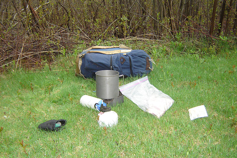 a mild chill coming on. I drag the soaked sleeping bag out of my pack and