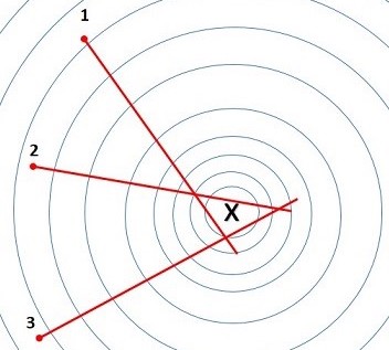 Cell towers can do this as well, assuming the towers are essentially on the same plane (ie: 2 dimensions). |