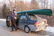 And it was a gorgeous day, cold but sunny, and also getting late. At 3:30pm, I threw the Penobscot on the roof of the old green Honda, picked up Gordon, and off we went--promising not to fall into the water, getting the canoe over the couple feet of shore ice, like a few years ago.