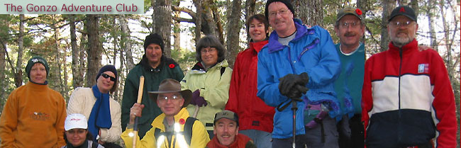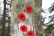 After camp was struck, we headed off on a gentle walk through the forest, looking for an appropriate tree on which to pin our poppies. You'd think that in a wooded space the size of Keji we could have found one closer but, no, we had to walk for 2½ hours until we found the perfect tree. So after expending a whole bunch of effort to leave no trace of our presence, we left a cluster of non-biodegradable poppies lodged in the trunk of an unsuspecting tree at 11:00. Then we kept walking. Everyone managed to not fall into the river as we improvised a bridge out of a stick. And we kept walking until we found the civilization of the parking lot just after 4:00. We saw one chipmunk on our trek, all other four-legged wildlife seemed to have found somewhere warm to hang out and play cards.