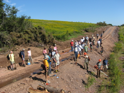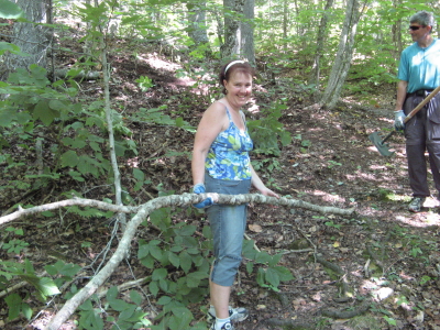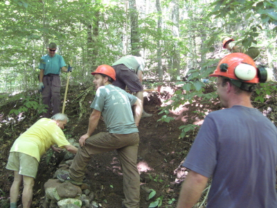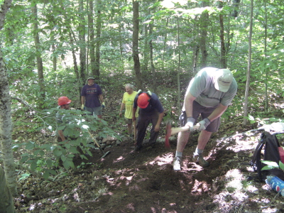 dig dirt, move/cut fallen trees, etc., as we worked on 4-5 kms of the