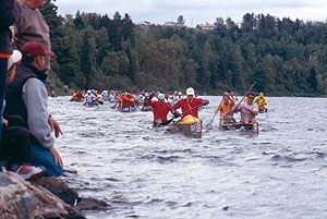 I glanced left and right and watched as seventy-five canoes lined up around me in a line
