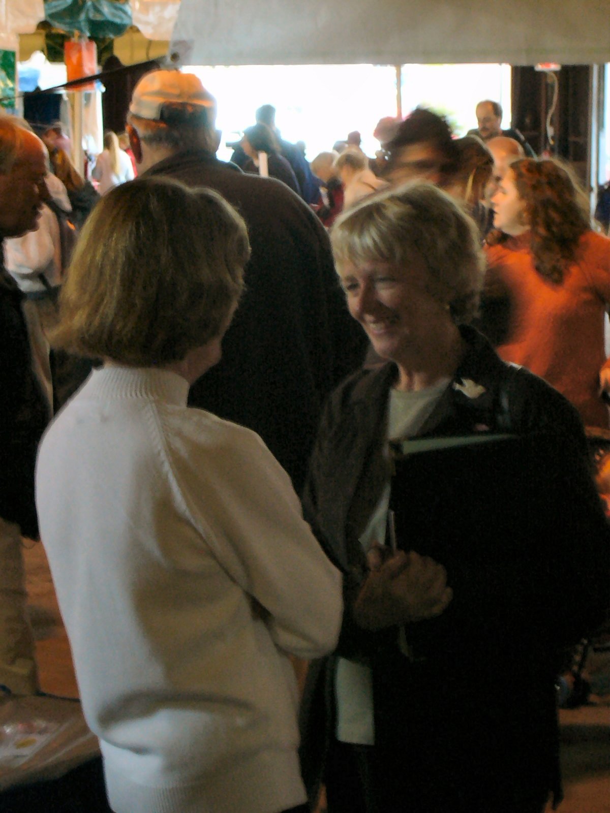 Nova Scotia MP Alexa McDonough talking with Chebucto Chair Marilyn MacDonald.