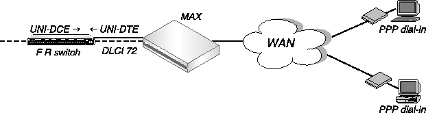In this example, the MAX has a nailed connection to a Frame Relay switch configured as a DCE and has a UNI-DTE interface configuration that switch. Figure 4-8 shows the connection.