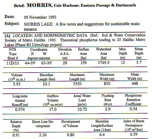 - MORRIS Lake, Dartmouth:- Enriched-