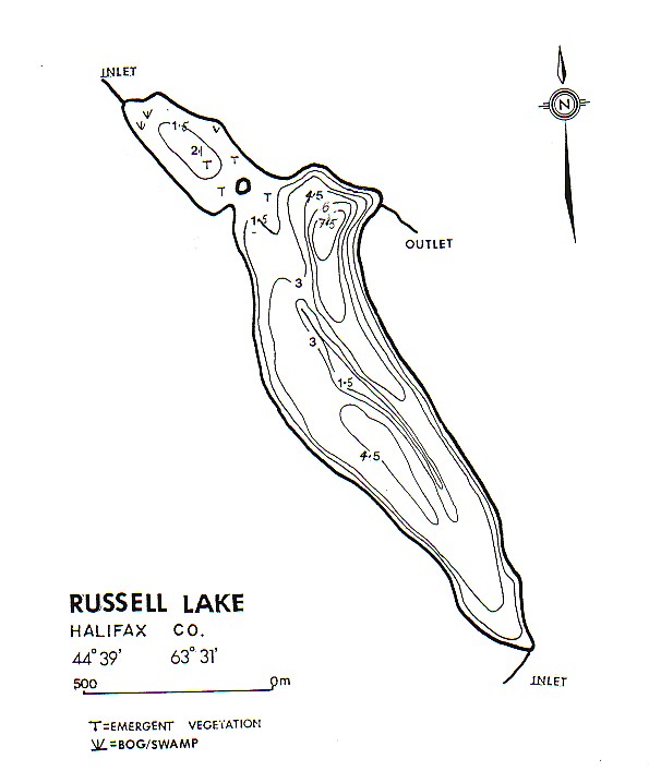 Caution: Since Russell Lake is a shallow lake, the standard limnetic (i.e., open-water) trophic parameters may not represent the true trophic status of the lake.