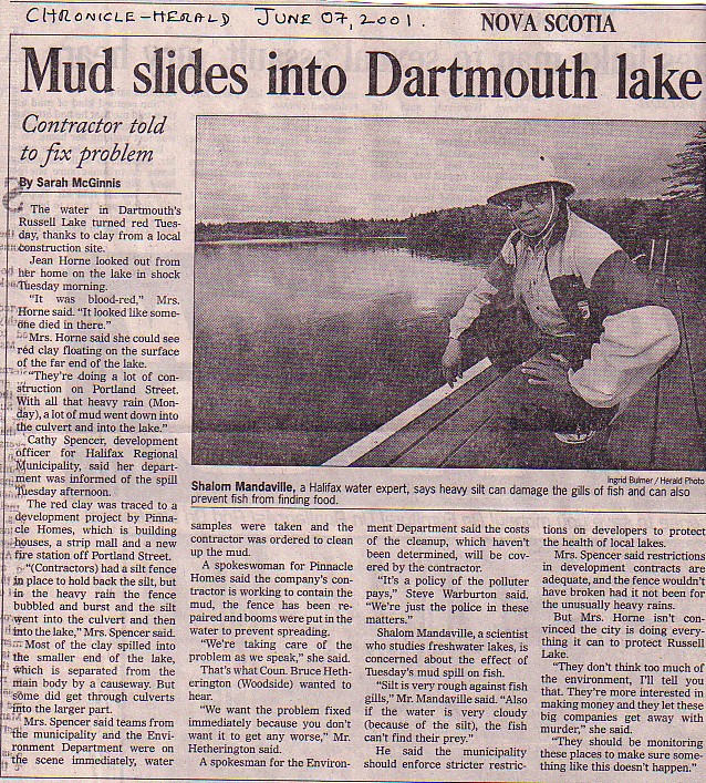 Nova Scotia Dept. of Fisheries expresses grave concerns in stocking Russell Lake with trout; July 09, 1991: