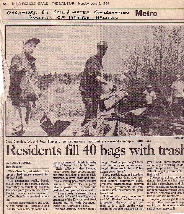 Soil & Water Conservation Society of Metro Halifax (SWCSMH)A selection of photos included below which biologist, Peter Shacklock, kindly extracted from our video produced on Shaw Cable; also included is the photo of the MLA for the area. Media article, Chronicle Herald.
