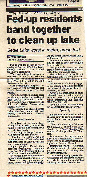 - Settle lake among the worst; The New Dartmouth News, September, 15, 1994