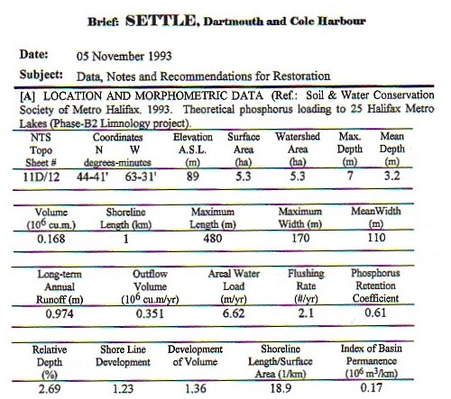 - SETTLE LAKE, Dartmouth:- Eutrophic, comparison with HRM's data of 2006-2011, and suggested restoration parameters; October 30, 2013