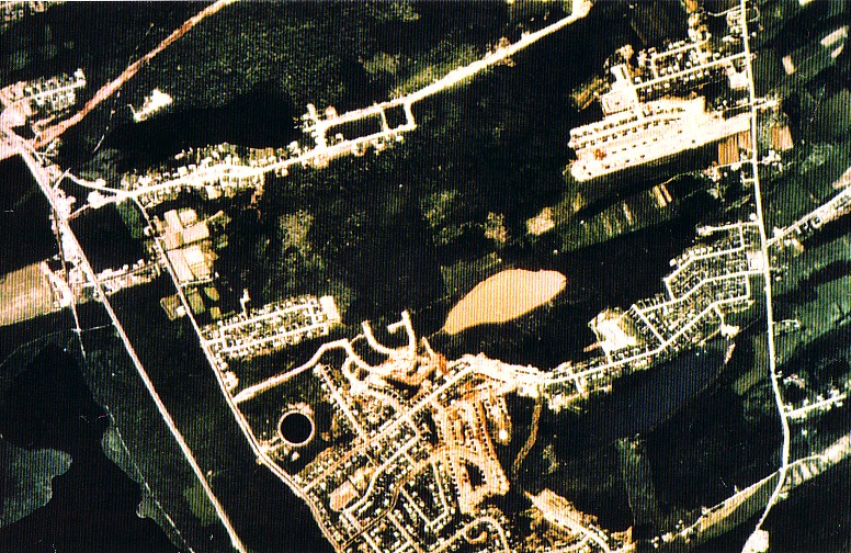 - An aerial photograph of Settle Lake taken sometime during upstream construction