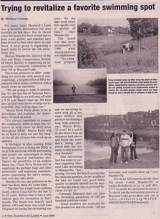 A superb advance article written by the Dartmouth Laker in their June 2004 issue not only about this Environment Week event but also about our upcoming beach restoration efforts.