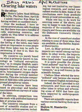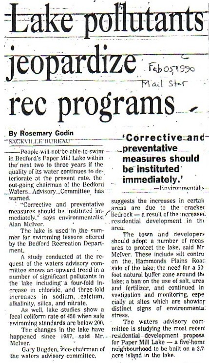 The other option is to disallow any further development similar to what residents in Lower Sackville triumphed at Second Lake after years of intense lobbying. Even there, significant amount of chemical and biological limnology was conducted by us.