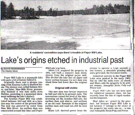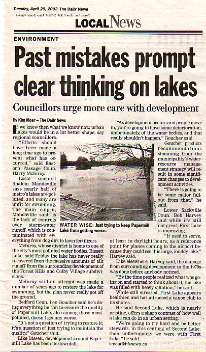 Papermill Lake watershed                     Soil & Water Conservation Society of Metro Halifax (SWCSMH) Master Homepage