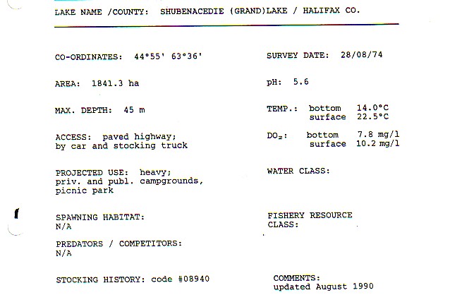 fish species of the Shubenacadie Grand Lake during year-1994.