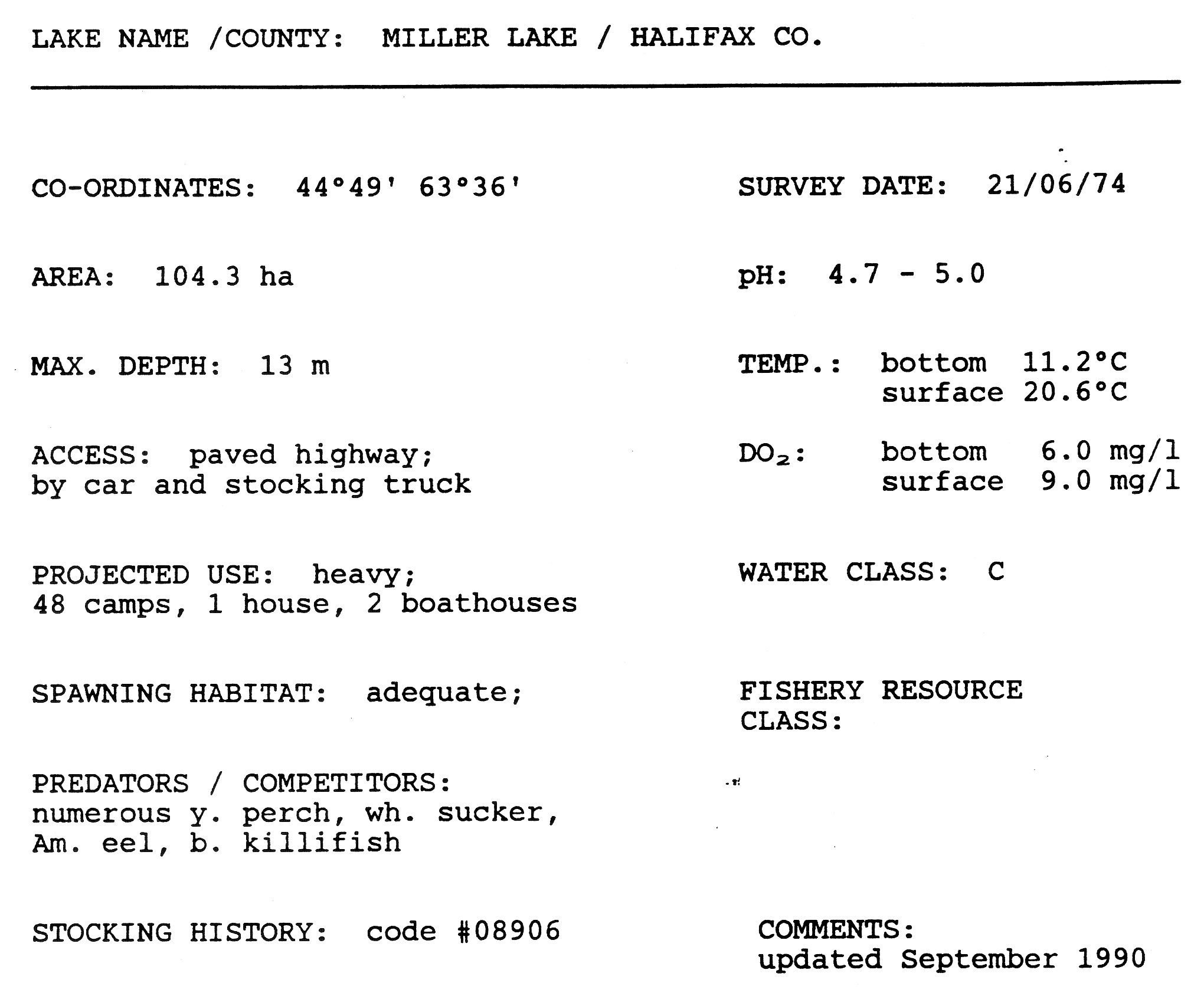 The bathymetric map; the morphological data; the Shubie headwaters flow chart;