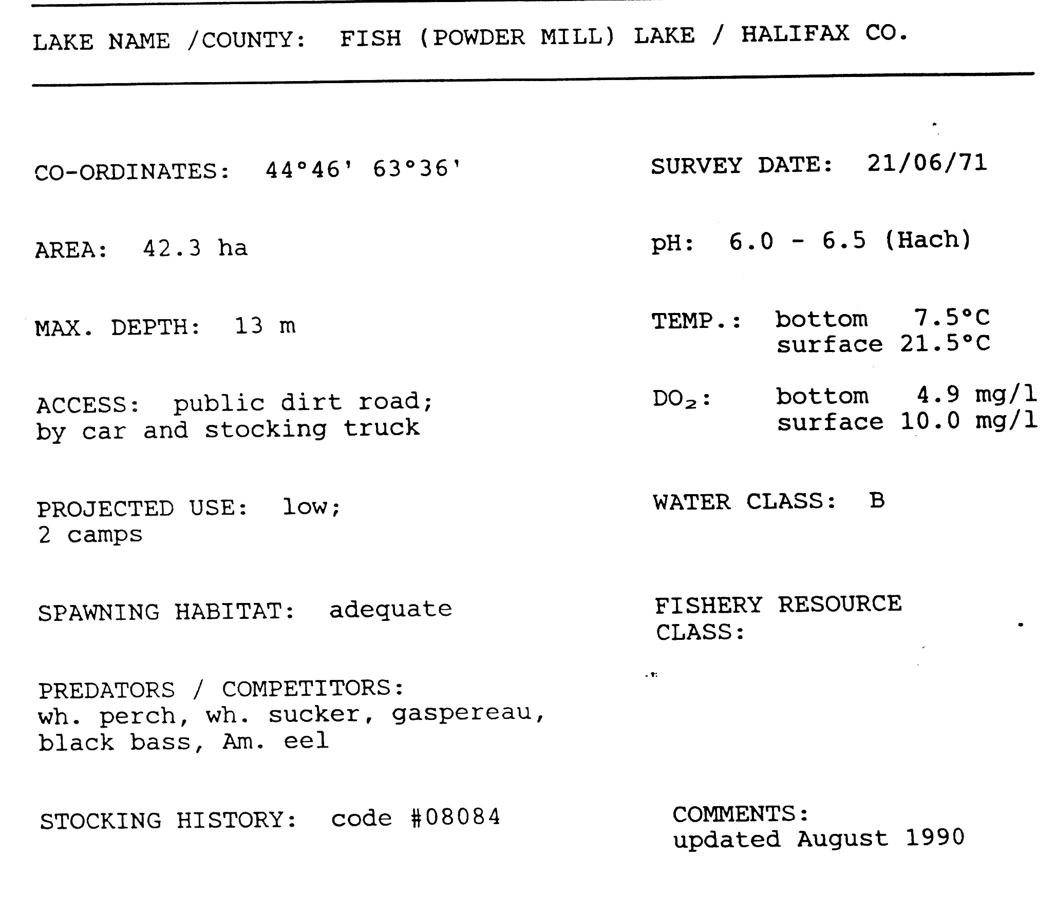 The bathymetric map; the morphological data; the Shubie headwaters flow chart;
