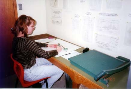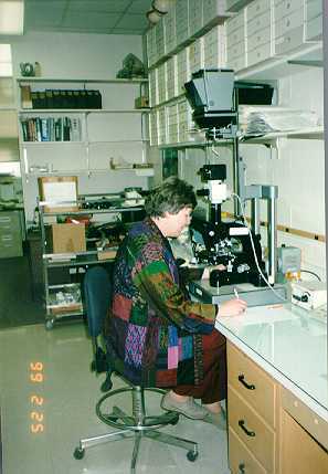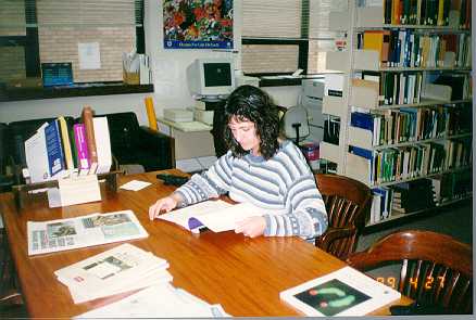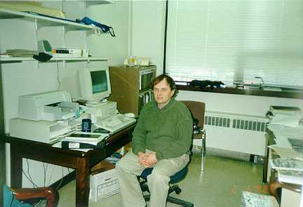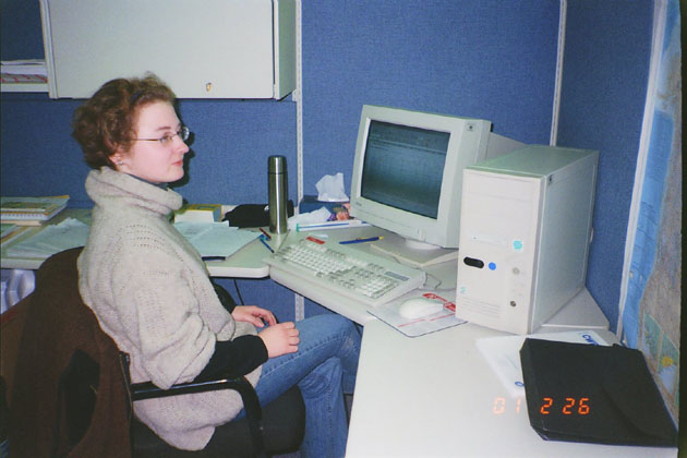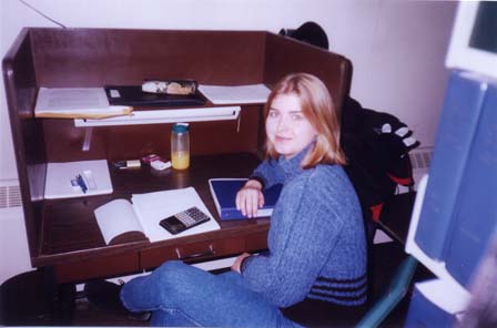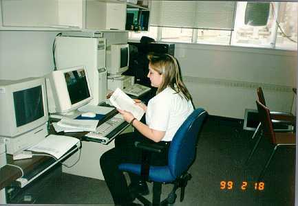 - Monica using a computer at the facilities of one of our esteemed benefactors, National Research Council of Canada Institute for Marine Biosciences, Halifax, Jan.-March, 1999.