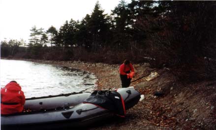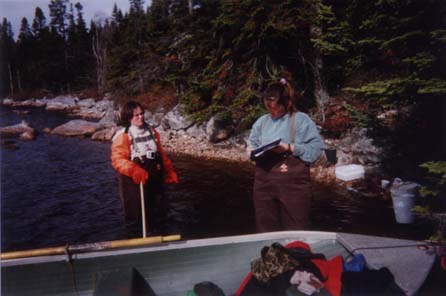 - Kim Hynes and one of our partners, Phil from CFB Shearwater at Site-4, Morris lake on Nov 21, 1997.