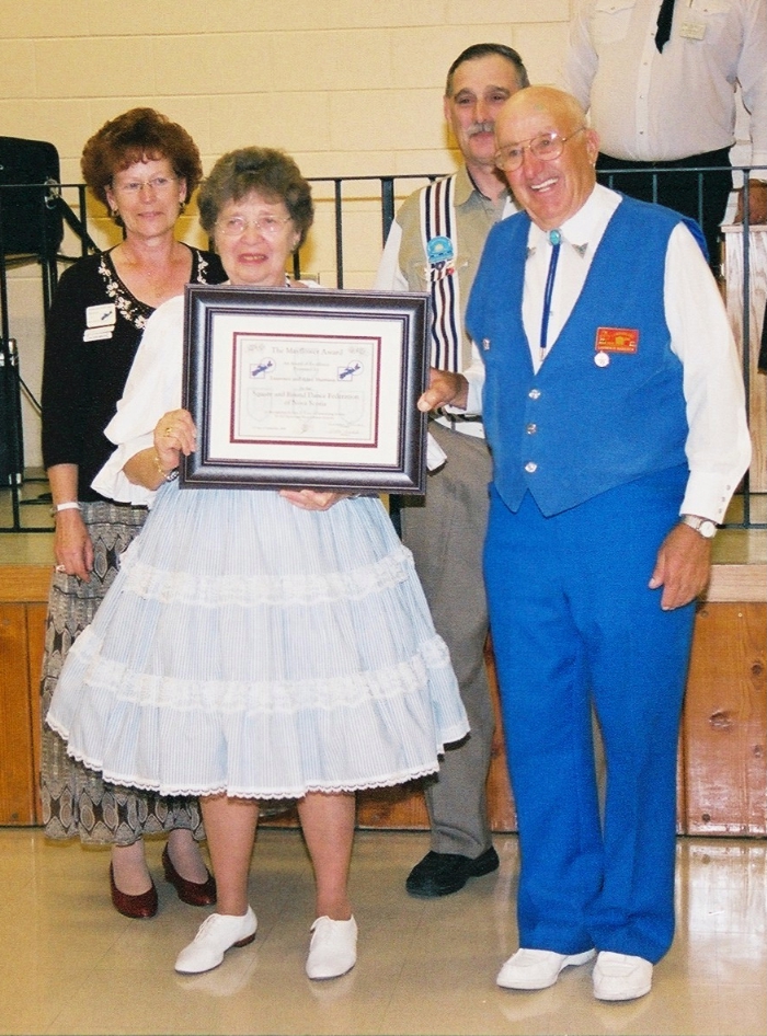 SRDFNS President, Bob Ruohonemi, chaired the Awards Ceremony at Festival 2003 in Truro. The Award Committee Chaircouple, Laurence & Alice Harrison, produced the certificates andread the criteria for both the Longevity and Service Awards. Committee members Dan &Janette Burke arranged the seating and did the ushering. Murray & Jean Berry, Fundy RegionRepresentatives, presented the awards to dancers and club representatives. Alex Ritchie was theofficial photographer and producer of the Mayflower Award Certificates.