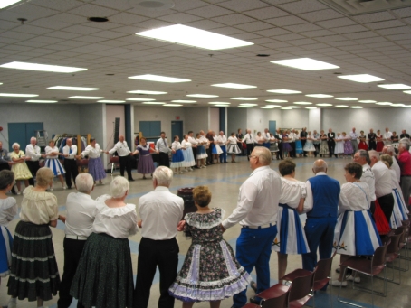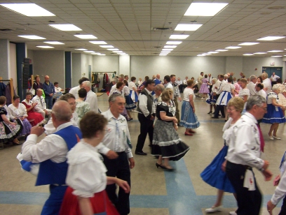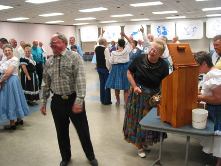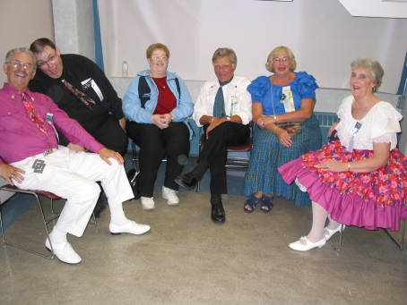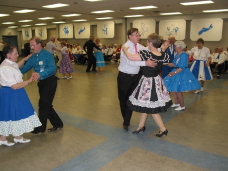 The round dancers show their moves. The classy wall panels were originally made by Marion Atkinson for the Valley Festival in 1989. Thanks to Clara and Harold Redden for supplying them.