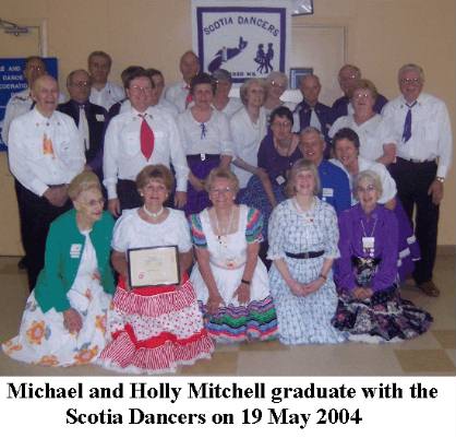 The Scotia Dancers held their first graduation ceremony in their new dancing premises at the Sackville HeightsCommunity Centre on Wednesday May 19, 2004. The club members were in full attendance to celebrate thecompletion of another full teaching-term by Club Caller, Pat Matheson. The traditional ceremony saw the lighting ofcandles and reading of the four oaths of square dancing. It is always a good reminder for all dancers to reflect on thetraditions of our activity and remind ourselves of the benefits we derive from square dancing.