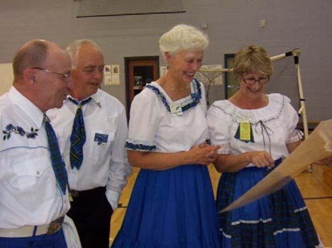 In an effort to attract new people to our activity, Cumberland Twirlers presented demos at the Community Fair in Amherst and the Cumberland County Exhibition in Oxford, and also took advantage of available free advertising. Our opening dance this fall was attended by five squares of dancers, who enjoyed a Corn Boil hosted by one of our members at their riverside cottage in the country.