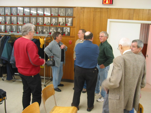 Standing: Louis Elsliger seated L to R Dick Tarkowski, Everett Mosher, Bob MacLaggen, Owen Letcher, Jackie Smith, Duane Estabrooks