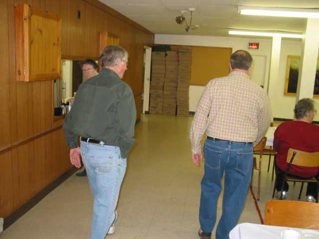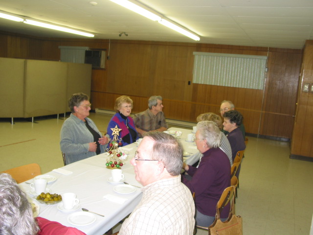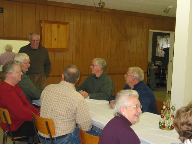 Facing: Barb Haley, Jackie Smith, Bob MacLaggan, Dick Tarkowski, back to camera Duane Estabrooks, Owen Letcher