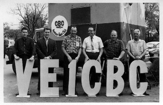 Members of the CBC Halifax Anateur Radio Club preparing to to load the EMO vehicle for field day 196?.