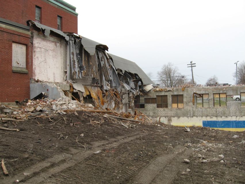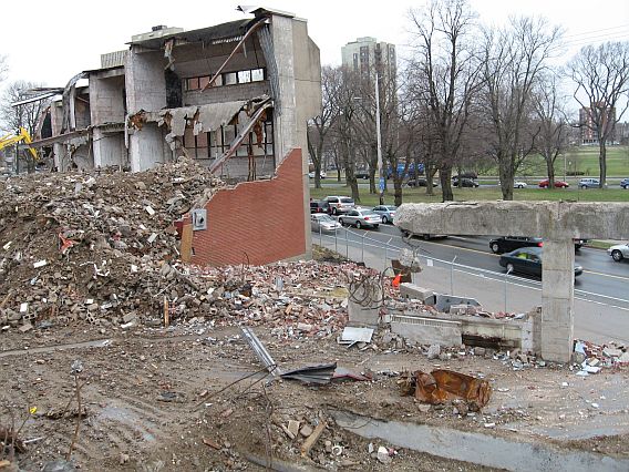 The picture below shows the old wing still standing and where the "new" wing used to connect. These photos were taken in late April. The building is expected to be levelled by the end of June.