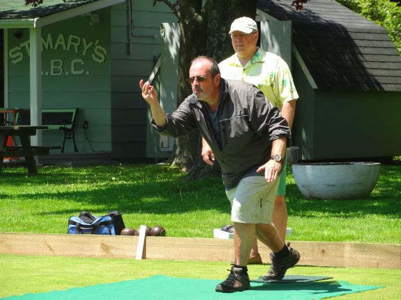 What do Class of 71ers do when they hit 60? Well two of them, Greg Snow (following through) and Steve Smith, tried their hand at lawn bowling at St. Mary's Lawn Bowling Club.